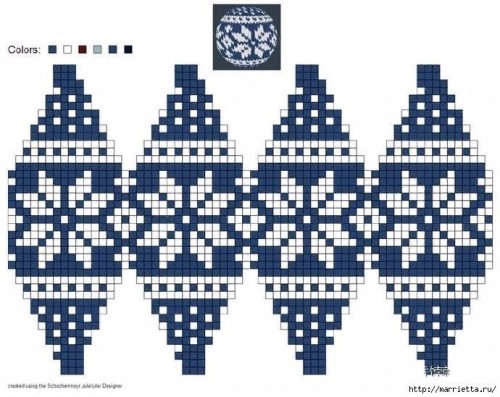 Новогодний шар с норвежскими снежинками в технике жаккард спицами.