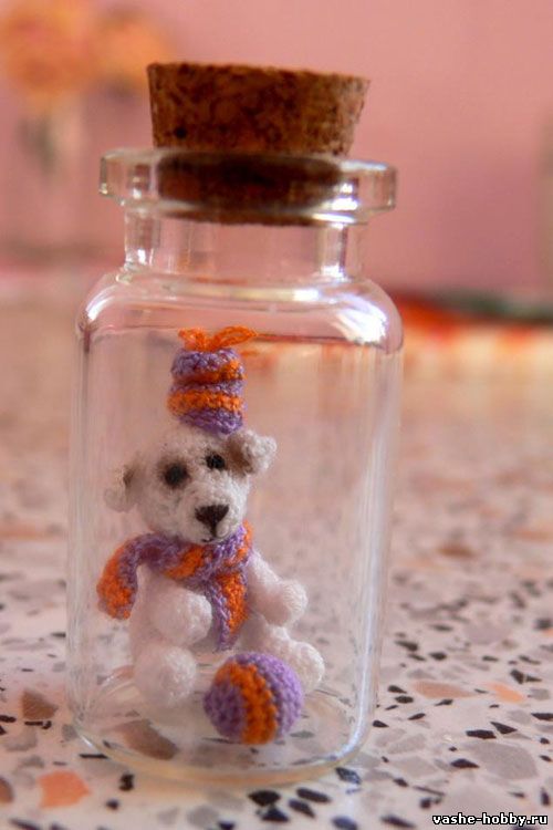 Уже после опубликования статьи читатели поделились с нами примером работы, которую мы просто не могли не поместить сюда. Очень симпатичная и сложная работа. Миниатюрный вязаный мишка.