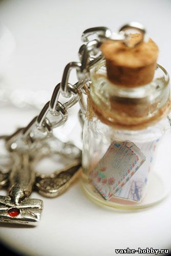 Его работы нас восхитили, и мы решили узнать, как еще можно применить такие бутылочки, и, конечно, обратились к нашим мастерам. Фантазия не знает границ, а умелые руки мастериц не знают преград. Как и ожидалось, изделия настолько разнообразны, что рассказать обо всем просто не хватит сил. Миниатюрные флакончики служат амулетами, оберегами, напоминаниями. Даже шутки можно запечатать в сосуд. Вот, например, оригинальный способ избавиться от боли предлагает delnara